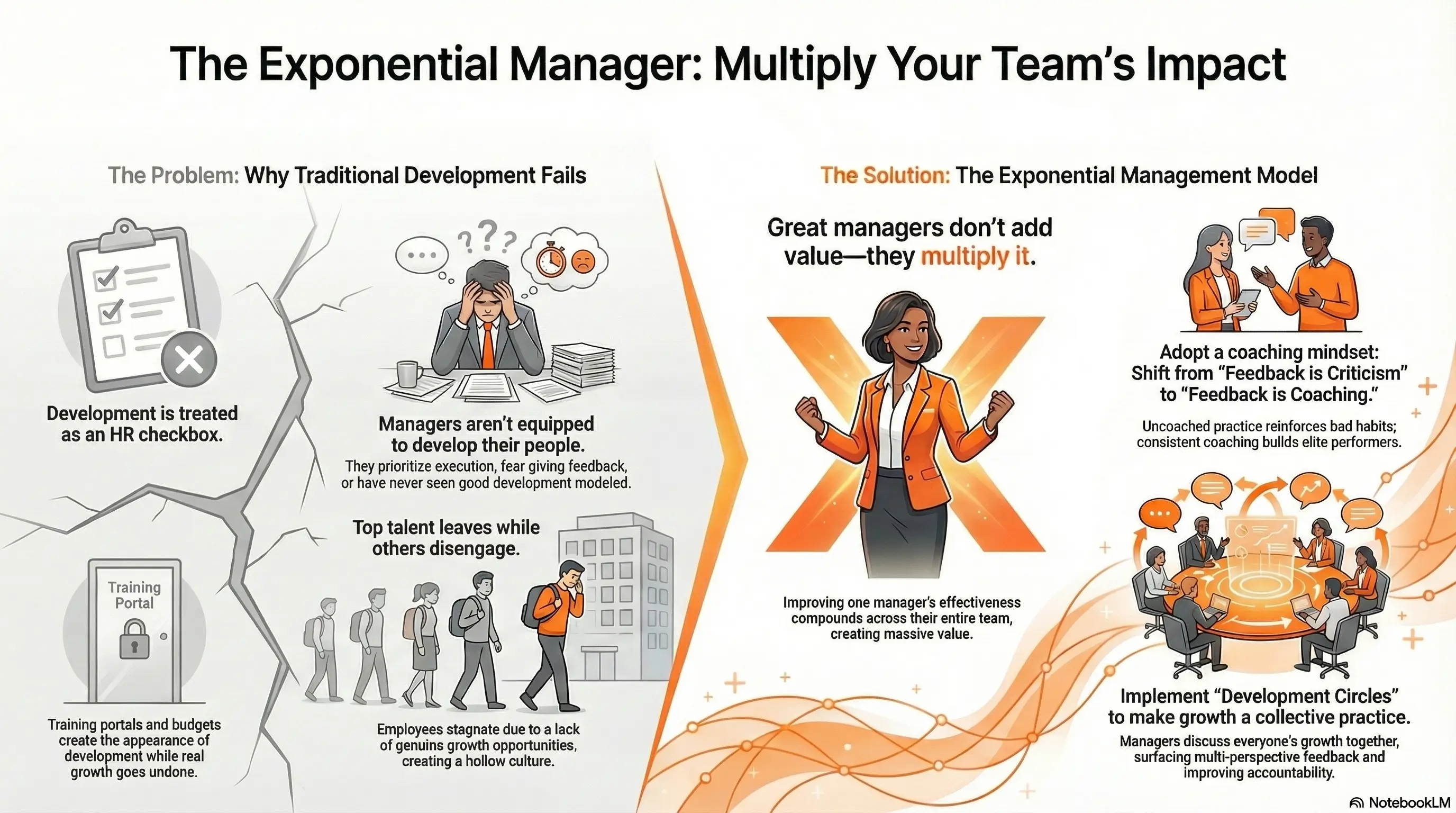 The Development Circle addresses part of this by creating peer learning. But exponential management goes further. It asks: what if we treated manager development with the same seriousness we treat individual contributor development?